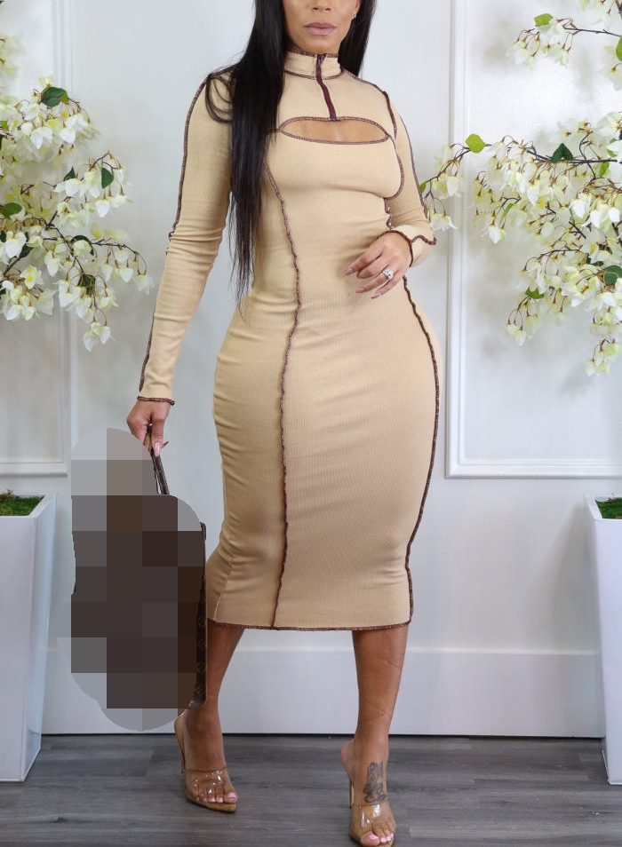 2021 Styles Women Fashion Fall & Winter INS Styles Long Sleeve Cut Out Maxi DressSKU: #OEM5099-2