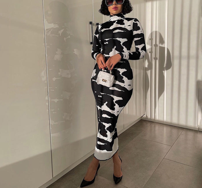 2021 Styles Women Fashion Fall & Winter INS Styles Print Long Sleeeve Maxi DressSKU: #CF48417-1