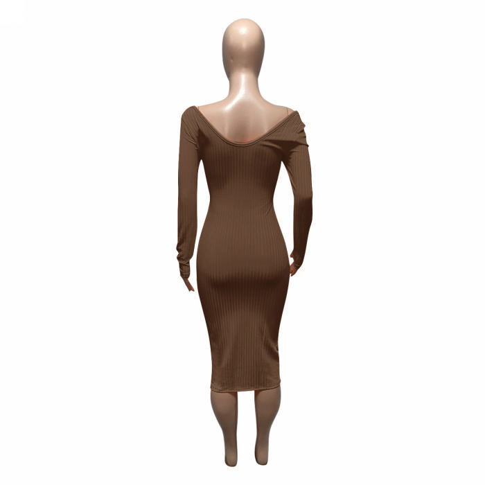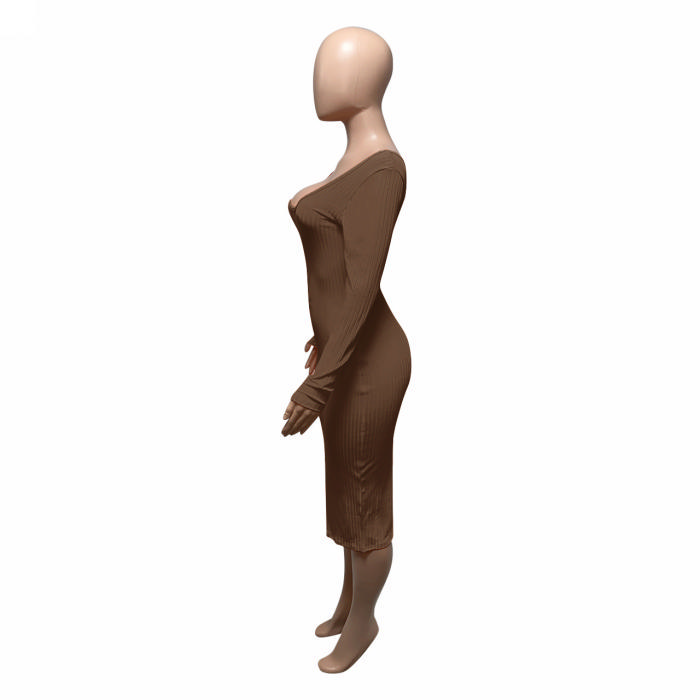 2021 Styles Women Fashion INS Styles Fashion Autumn Long Sleeve Midi DressSKU: #OEM4916-9