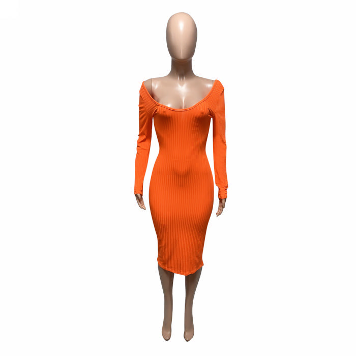 2021 Styles Women Fashion INS Styles Fashion Autumn Long Sleeve Midi DressSKU: #OEM4916-4