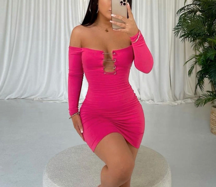 2021 Styles Women Fashion INS Styles Fashion Autumn Off Shoulder Mini DressSKU: #OM0067-1