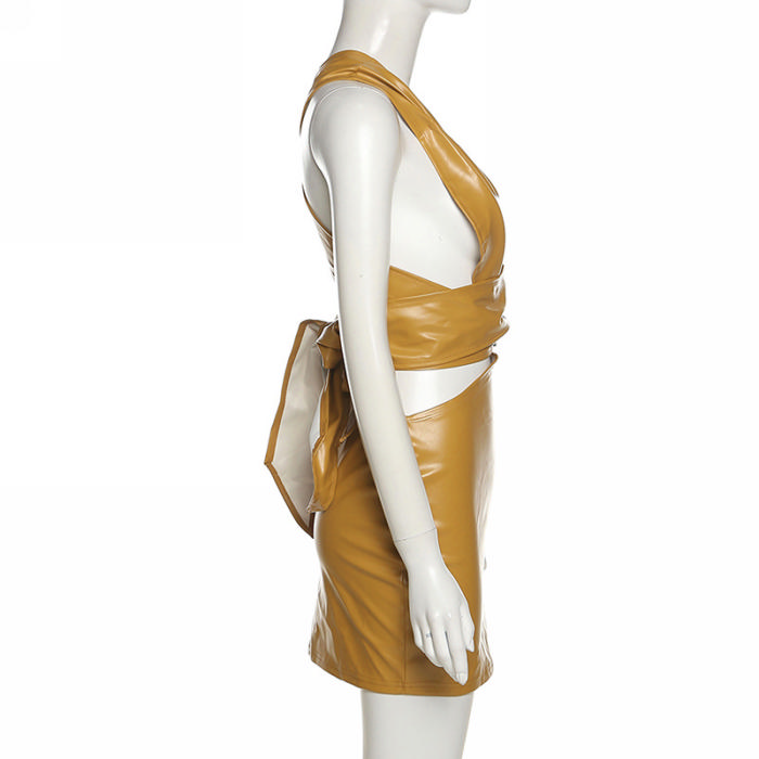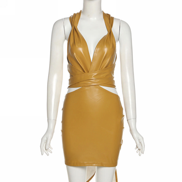 2021 Styles Women Fashion INS Styles Fashion Autumn PU Club DressSKU: #OM0058-1