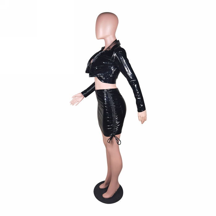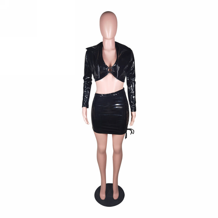 2021 Styles Women Fashion INS Styles Fashion Autumn PU Two Pieces DressSKU: #OEM4891-2