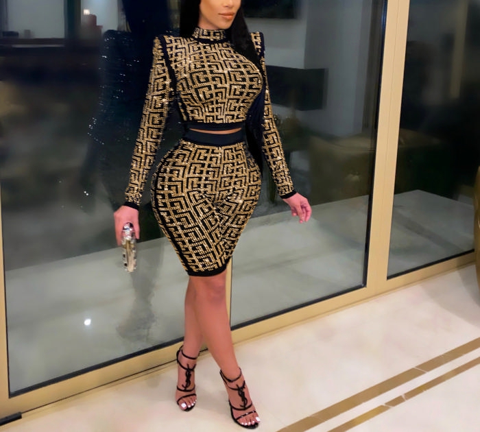 2021 Styles Women Fashion INS Styles Fashion Autumn Sequins Two Piece SetSKU: #CF27104-2