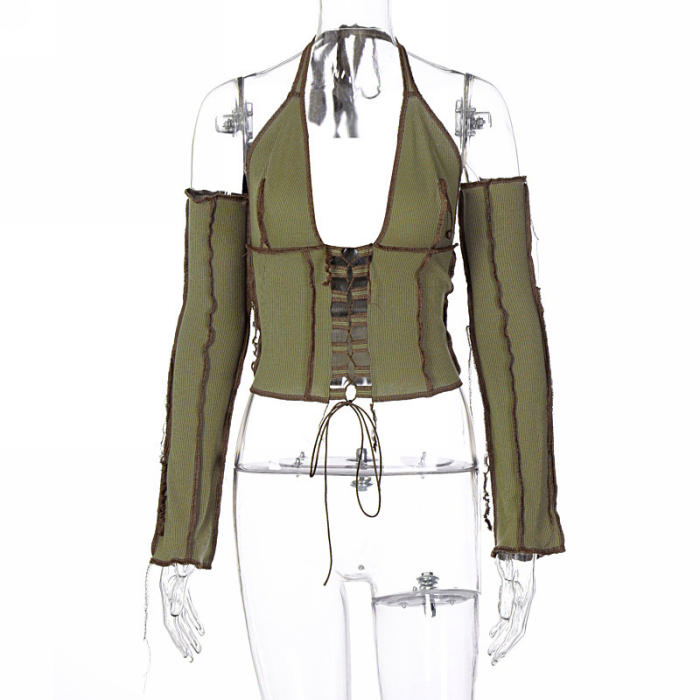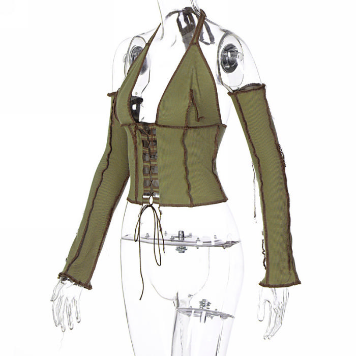 2021 Styles Women Fashion INS Styles Fashion Long Sleeve Lace Up TopsSKU: #CF22466-2