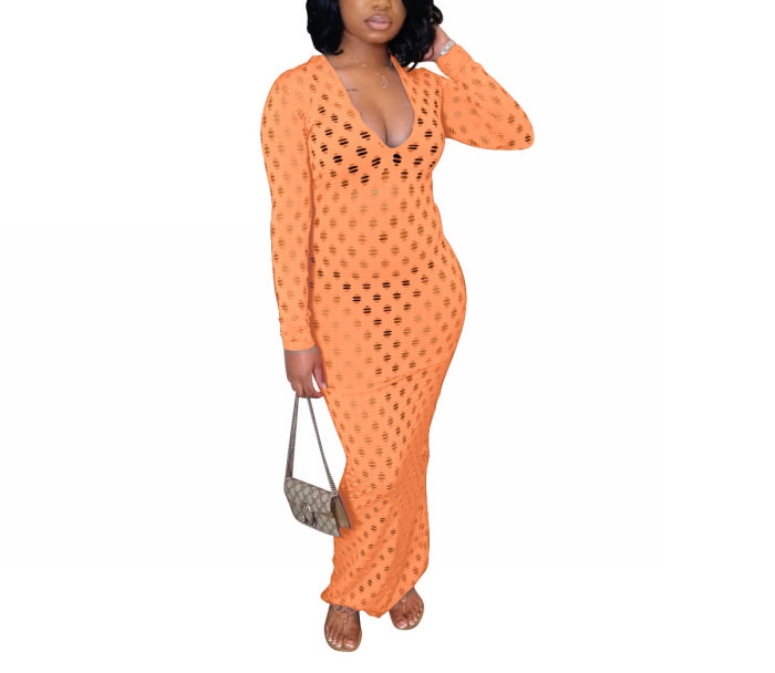 2021 Styles Women Fashion INS Styles Fashion Long Sleeve Maxi DressSKU: #CF24053-4