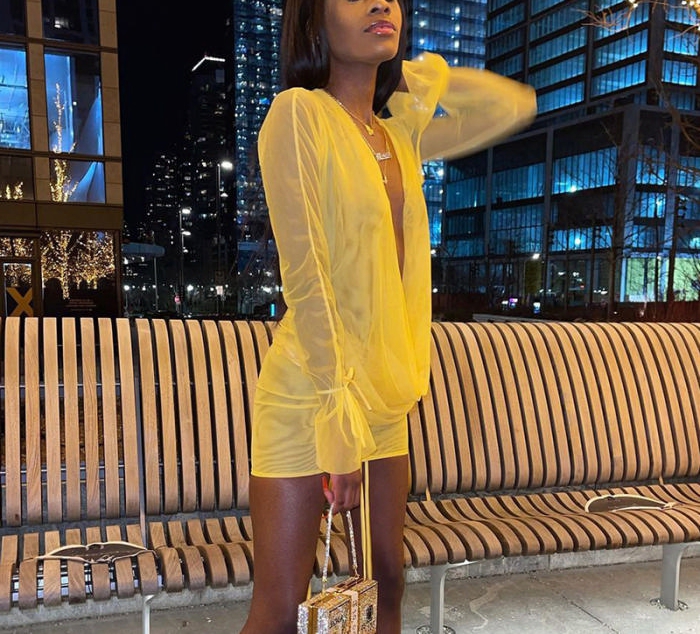 2021 Styles Women Fashion INS Styles Fashion Long Sleeve Mini DressSKU: #CF48260-2