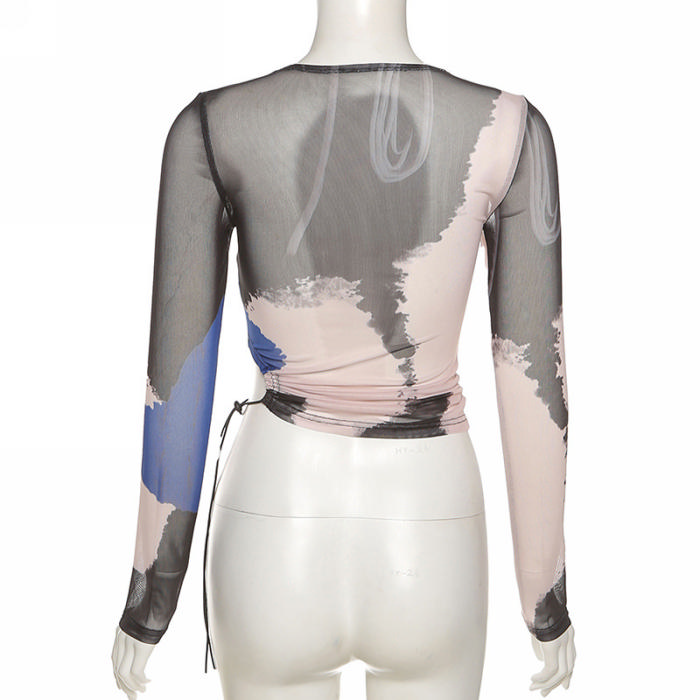 2021 Styles Women Fashion INS Styles Fashion Mesh Long Sleeve TeeSKU: #CF12211-1