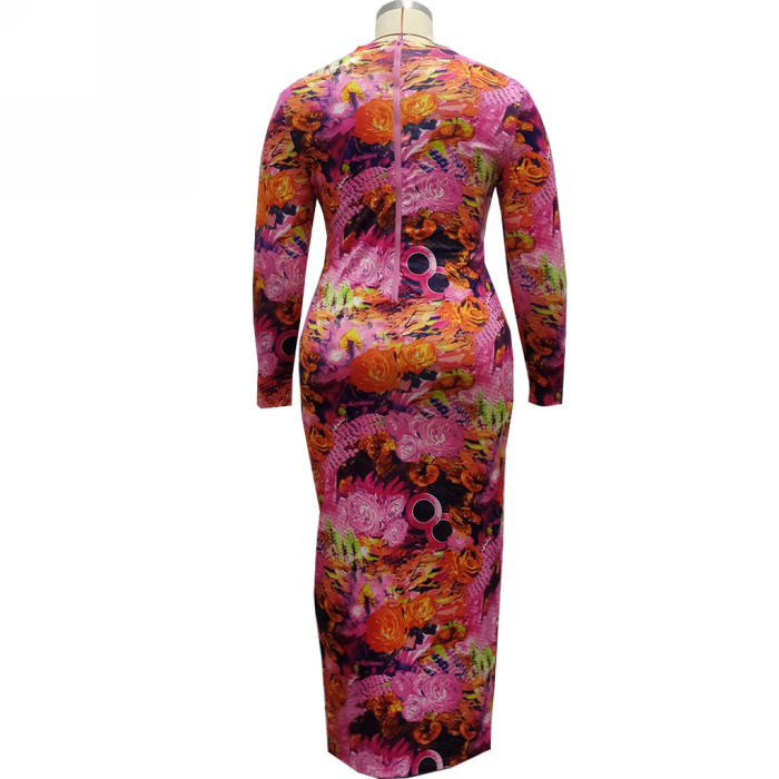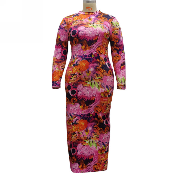 2021 Styles Women Fashion INS Styles Fashion Print Plus Size Maxi DressSKU: #CF51032-1