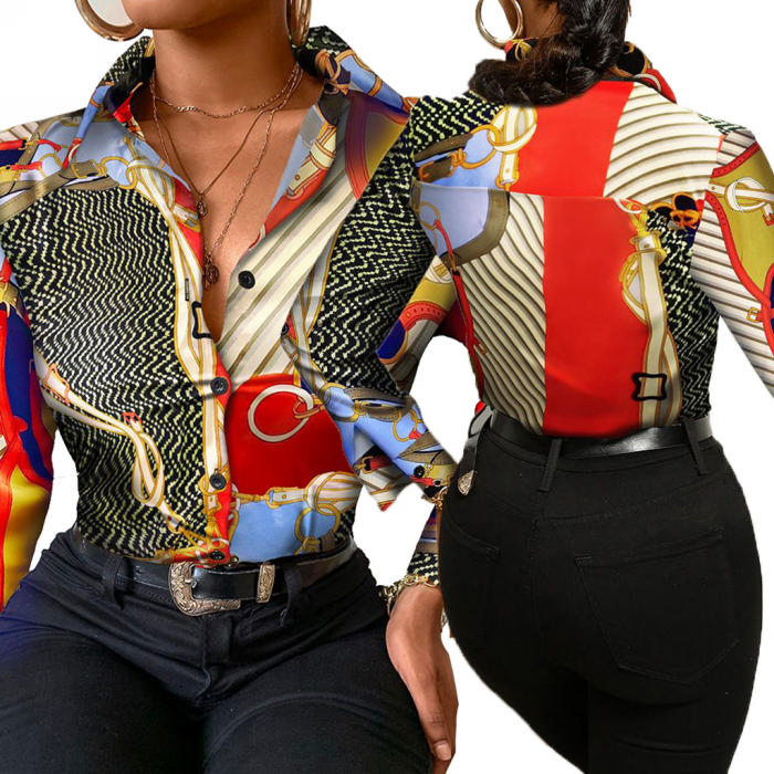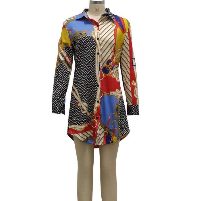 2021 Styles Women Fashion INS Styles Fashion Print Shirt DressSKU: #CF51002-4