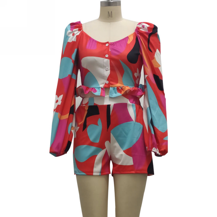 2021 Styles Women Fashion INS Styles Fashion Print Short Two Pieces SuitSKU: #CF51016-1