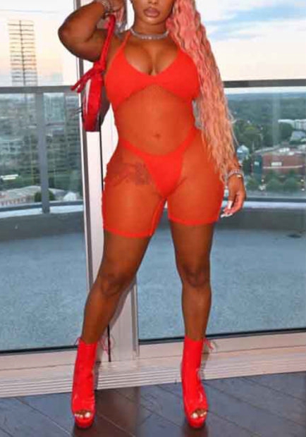 2022 Styles Women Fashion INS Styles Black Net Halter RomperSKU: #CF49851-2