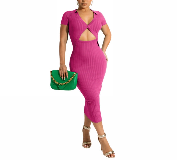 2022 Styles Women Fashion INS Styles Cotton Cut Out Short Sleeve Midi DressSKU: #OM0233-5
