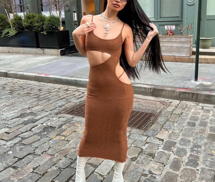 2022 Styles Women Fashion INS Styles Cut Out Maxi DressSKU: #XF92514-2