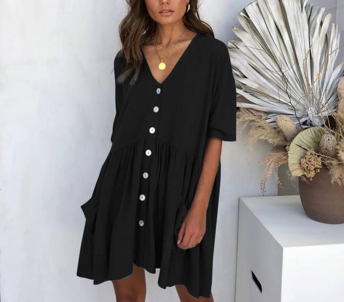 2022 Styles Women Fashion INS Styles Front Button Hem Mini DressSKU: #CF63026-1