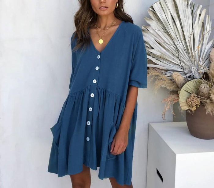 2022 Styles Women Fashion INS Styles Front Button Hem Mini DressSKU: #CF63026-3