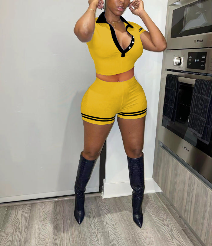 2022 Styles Women Fashion INS Styles Front Button Short Two Piece SuitSKU: #OM0218-3