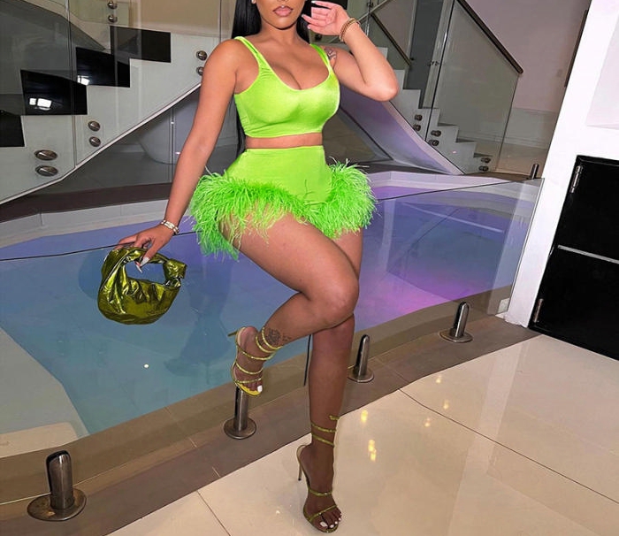 2022 Styles Women Fashion INS Styles Green Bottom Tassel Short Two Piece SuitSKU: #CF48703-1