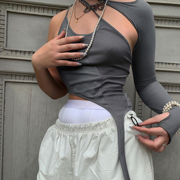 2022 Styles Women Fashion INS Styles Irregular Long Sleeve TeeSKU: #CF22626-2
