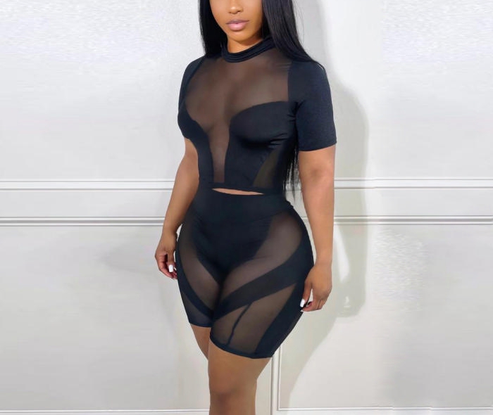 2022 Styles Women Fashion INS Styles Mesh Short Two Piece SuitSKU: #XF14867-1