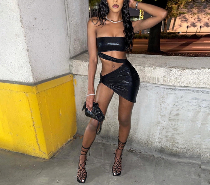2022 Styles Women Fashion INS Styles PU Cut Out Club DressSKU: #CF48713-3