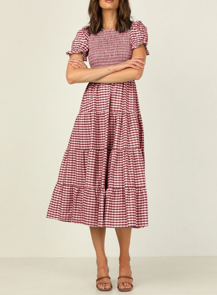 2022 Styles Women Fashion INS Styles Plaid Bohemian Maxi DressSKU: #XF28422-2