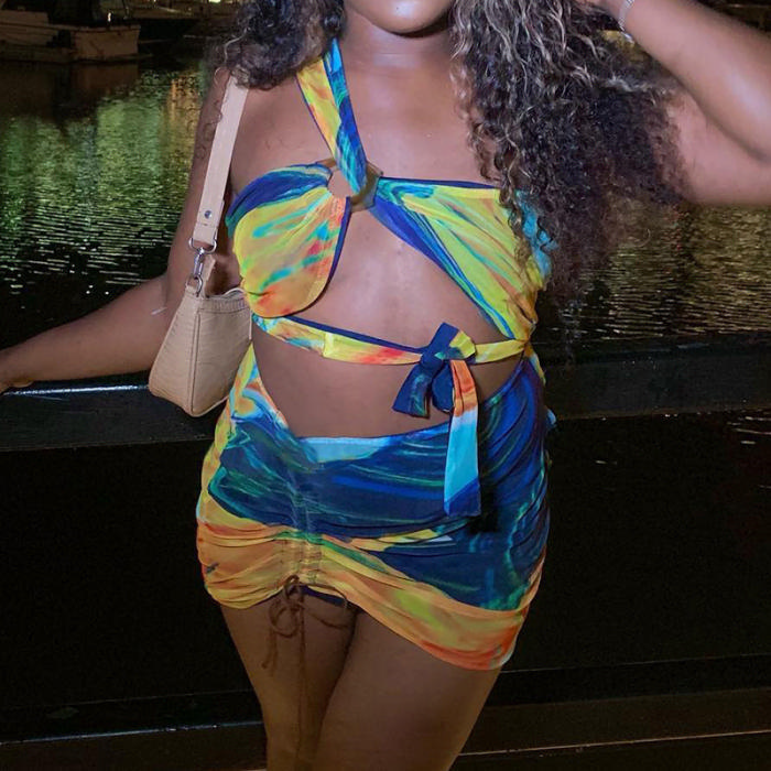 2022 Styles Women Fashion INS Styles Print Bandage Club DressSKU: #CF48624-1