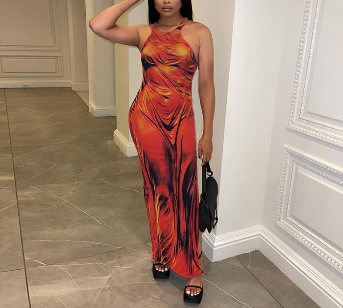 2022 Styles Women Fashion INS Styles Print Maxi DressSKU: #CF47105-2