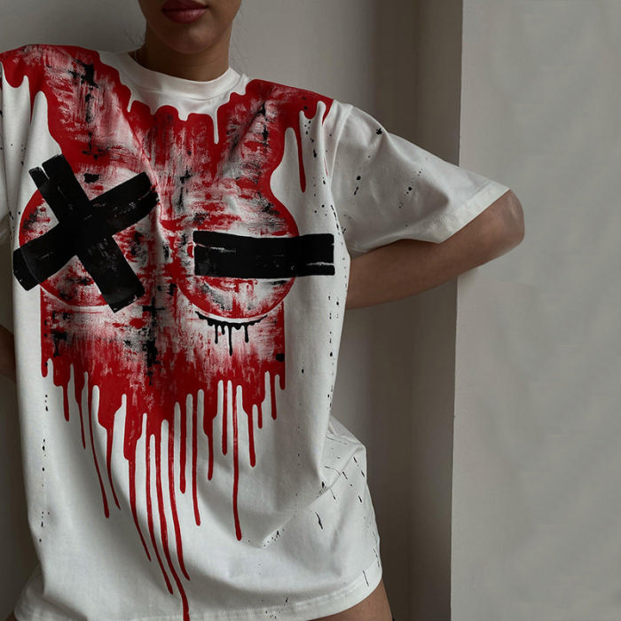 2022 Styles Women Fashion INS Styles Print Short Sleeve Tee DressSKU: #CF12303-1
