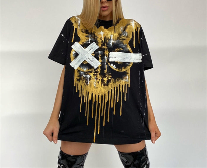 2022 Styles Women Fashion INS Styles Print Short Sleeve Tee DressSKU: #CF12303-2