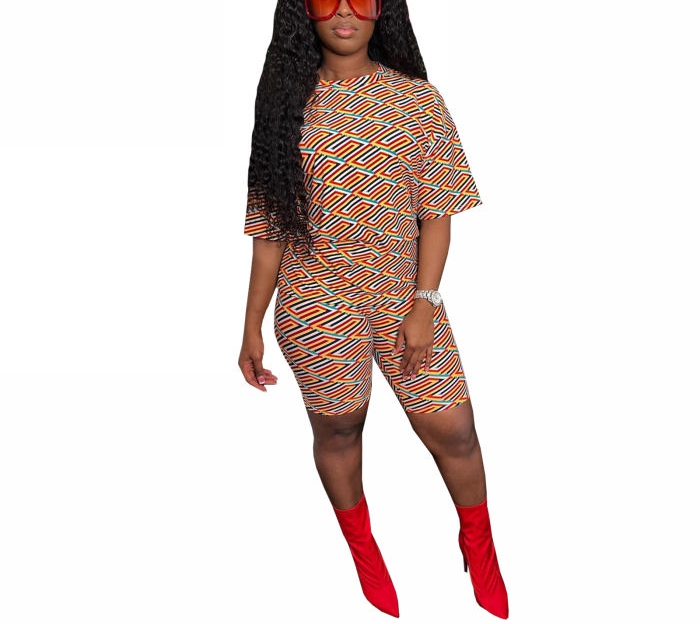 2022 Styles Women Fashion INS Styles Print Short Two Piece SuitSKU: #XF13414-3