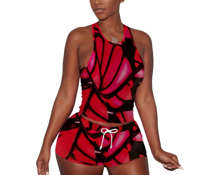2022 Styles Women Fashion INS Styles Print Short Two Piece SuitSKU: #XF13430-1