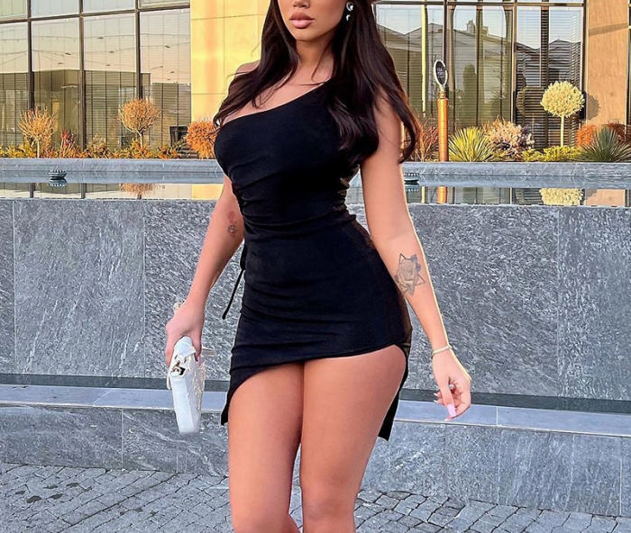 2022 Styles Women Fashion INS Styles Single Shoulder Cut Out Mini DressSKU: #CF22592-2