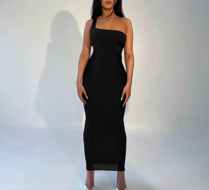 2022 Styles Women Fashion INS Styles Single Shoulder Solid Color Maxi DressSKU: #CF22650-3