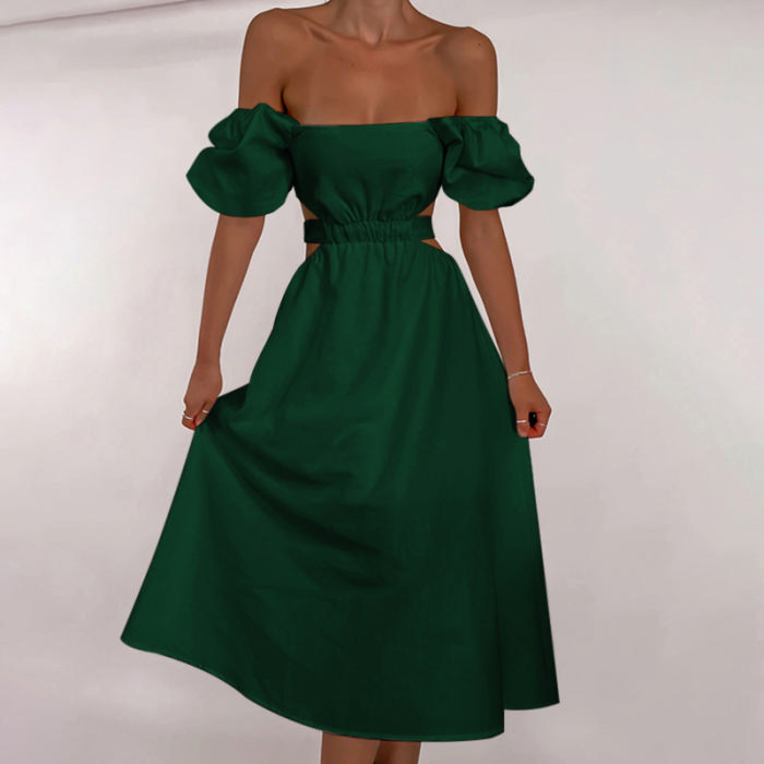 2022 Styles Women Fashion INS Styles Solid Color Cut Out Bohemian Midi DressSKU: #OU0071-3