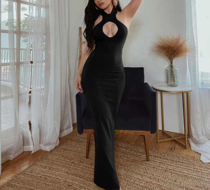 2022 Styles Women Fashion INS Styles Solid Color Halter Backless Maxi DressSKU: #CF22595-3