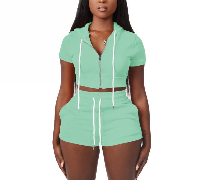 2022 Styles Women Fashion INS Styles Solid Color Hoodie Front Zipper Short Two Piece SuitSKU: #CF71004-9