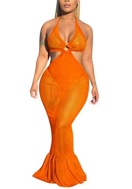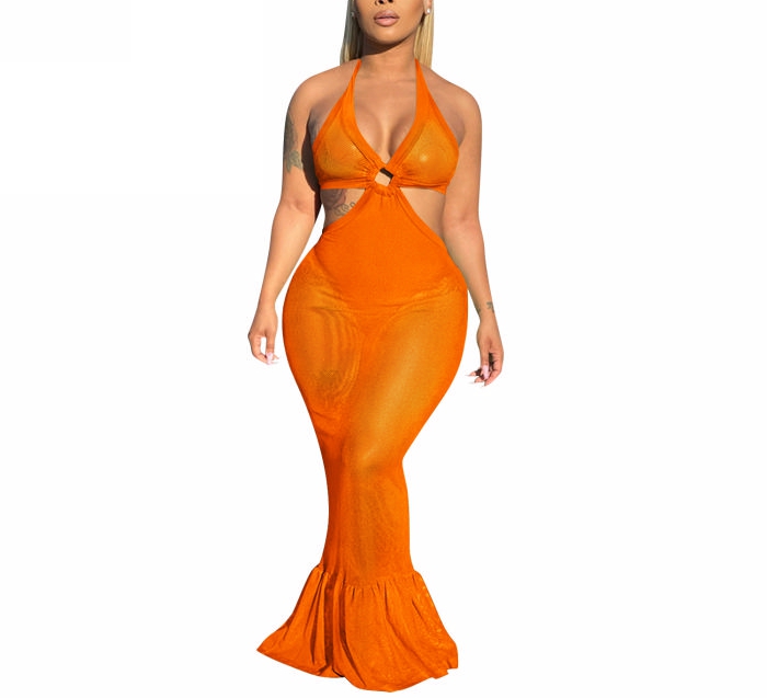 2022 Styles Women Fashion INS Styles Solid Color Mesh Maxi DressSKU: #RO004-2
