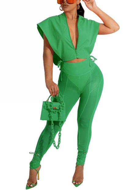 2022 Styles Women Fashion INS Styles Solid Color Mesh Two Piece SuitSKU: #XF23023-4
