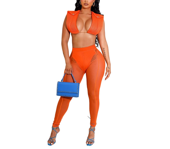 2022 Styles Women Fashion INS Styles Solid Color Mesh Two Piece SuitSKU: #XF23025-4