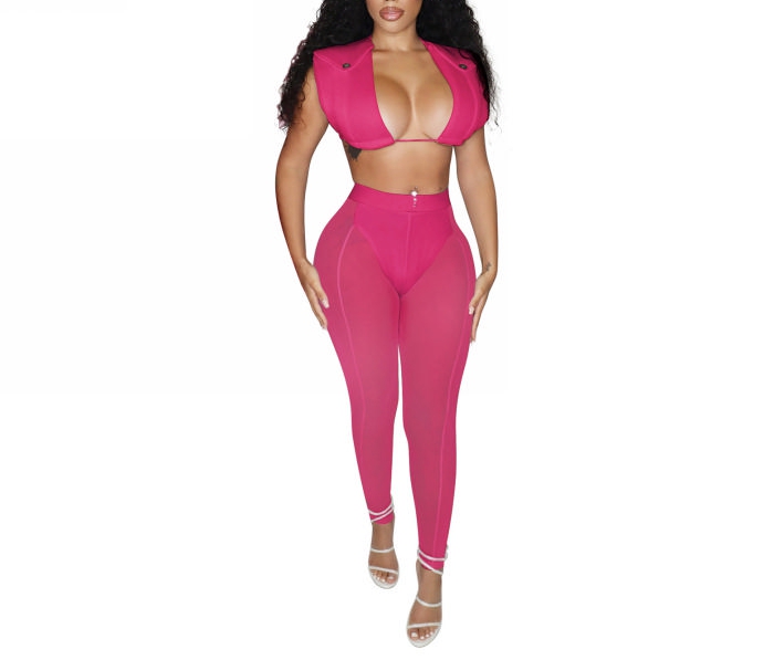 2022 Styles Women Fashion INS Styles Solid Color Mesh Two Piece SuitSKU: #XF23025-2