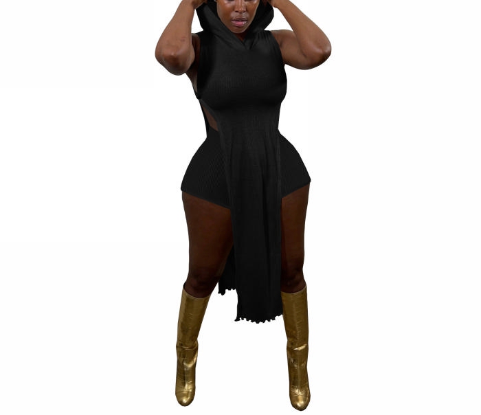 2022 Styles Women Fashion INS Styles Solid Color Rib Hoodie Short Two Piece SuitSKU: #XF13413-3