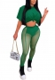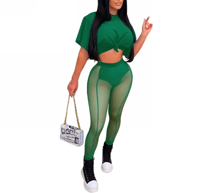2022 Styles Women Fashion INS Styles Solid Color Short Sleeve Tee+Mesh Long Pants Two Piece SuitSKU: #OM0213-10