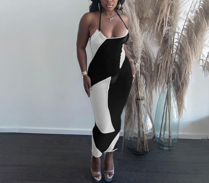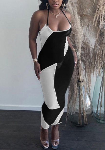 2022 Styles Women Fashion INS Styles Strap Contrast Color Maxi DressSKU: #CF48659-2