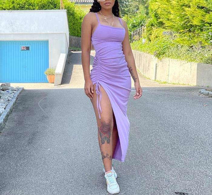 2022 Styles Women Fashion INS Styles Strap Irregular High Split Maxi DressSKU: #CF22718-3