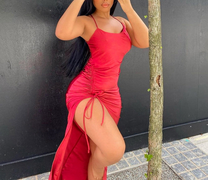 2022 Styles Women Fashion INS Styles Strap Irregular High Split Maxi DressSKU: #CF22718-2