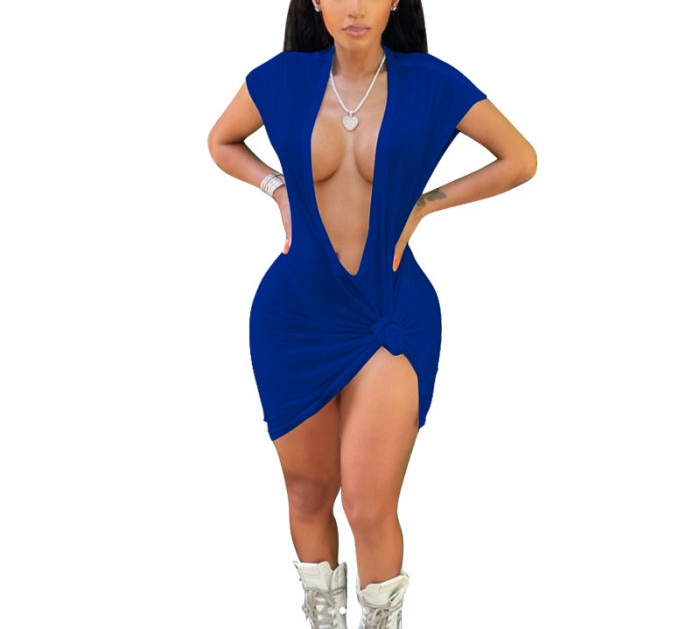 2022 Styles Women Fashion Spring INS Styles Deep V Neck Shirts DressSKU: #OM0145-5