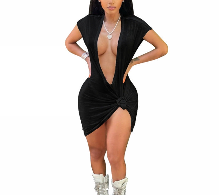 2022 Styles Women Fashion Spring INS Styles Deep V Neck Shirts DressSKU: #OM0145-4