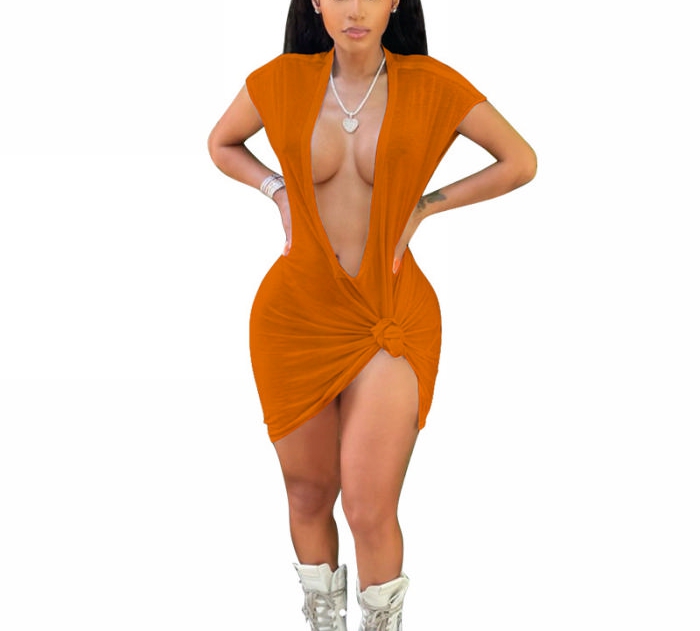 2022 Styles Women Fashion Spring INS Styles Deep V Neck Shirts DressSKU: #OM0145-2