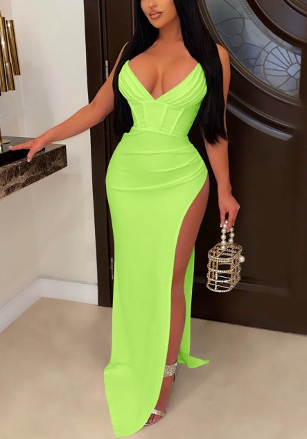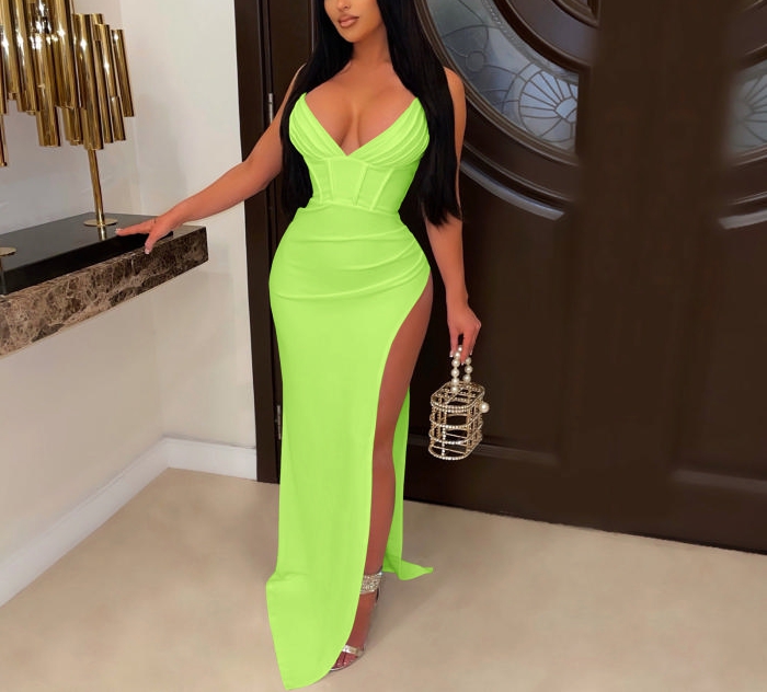 2022 Styles Women Fashion Spring INS Styles High Split Maxi DressSKU: #XF14837-3